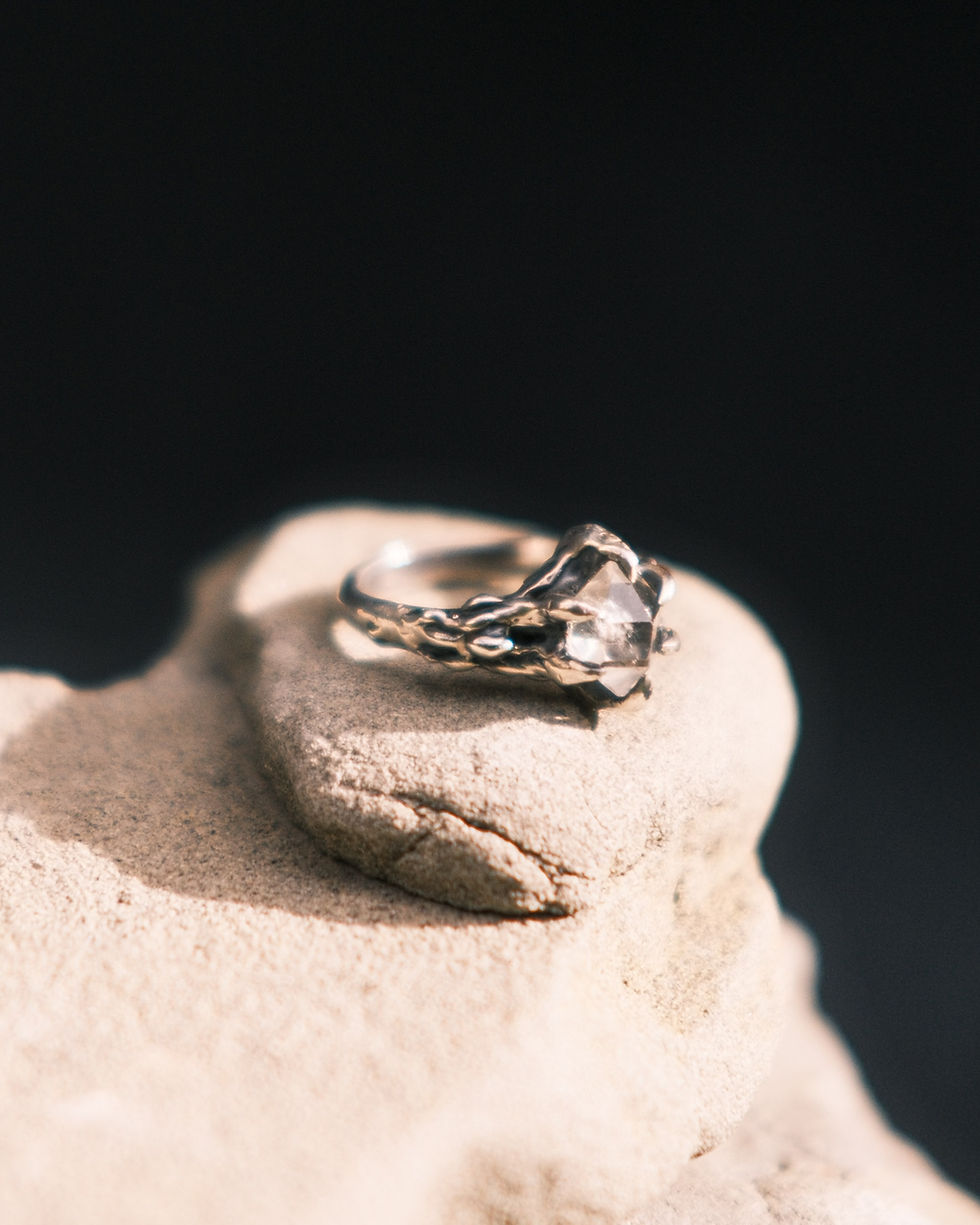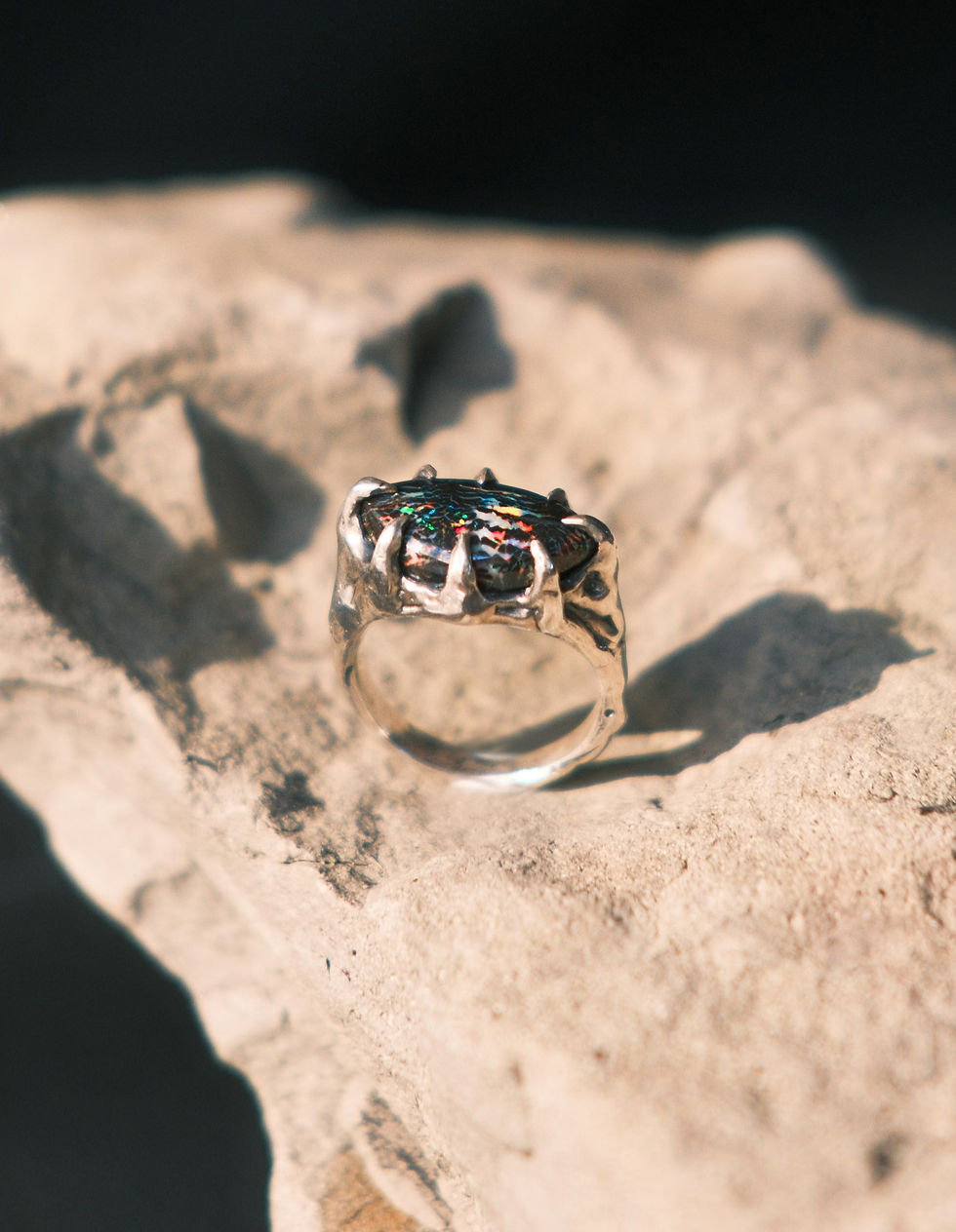 This hand sculpted pendant is cast from a master mould and hung on a handmade chain. (The original design was created whilst reading rare 90’s book “EL AN RA” inspiring the idea of earth bound angels). A freshwater pearl rests in the centre, anchoring wisdom, purity and resilience.